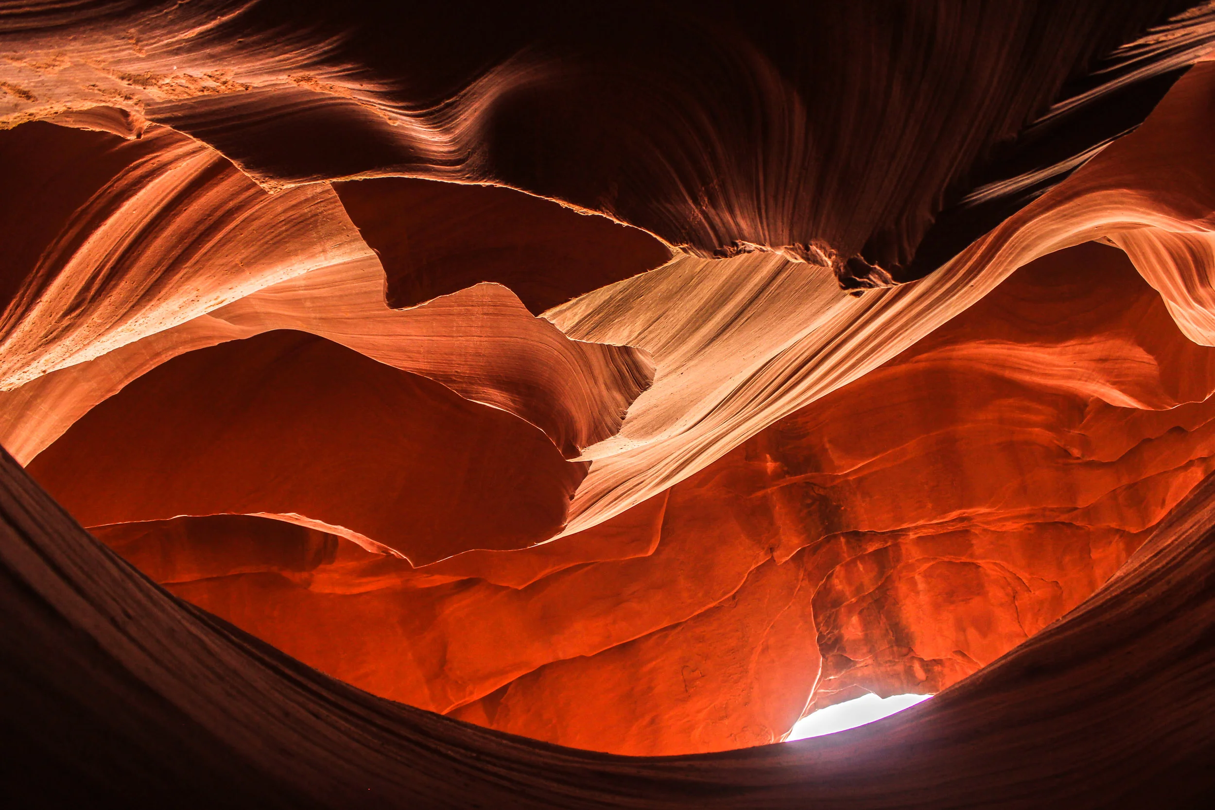 Antelope Canyon is located in the Navajo Nation, few miles east of Page, Arizona. It is a slot canyon with two separate sections, the Upper and Lower Antelope Canyon, both are incredibly gorgeous and worth visiting. They have formed as a result of years of erosion of the sandstone, mainly through flash flooding, which has led to the 'flowing' appearance of the canyon walls.